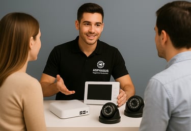 En Asphasus, ofrecemos instalación profesional de sistemas de seguridad adaptados a cada espacio. Comenzamos con una evaluación técnica para identificar las necesidades y definir la ubicación ideal de cámaras, sensores y demás equipos.